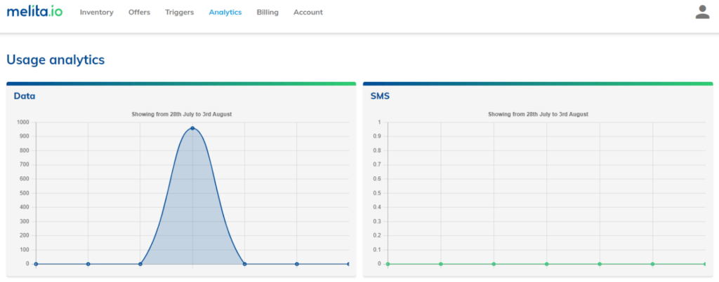 - Analytics – here you can understand the performance of your SIMs over time and their aggregate usage over time.
