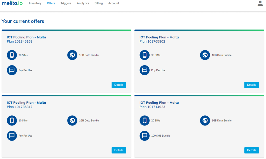- Offers – here you will find a summary of all the offers you have on this account and their status, whether they are active, pending activation, or still in the delivery stage. You may access more details on each offer directly from this screen.