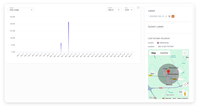 Überwachung aller SIM-Karten in einem Portal. Nutzungs- und Standortsinformationen sowie Konfiguration von Benachrichtigungen im Portal.