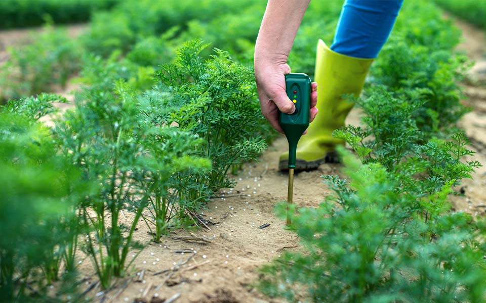 - Messungen von Bodenfeuchtigkeit, Salzgehalt und Temperatur zur Beobachtung der Anbaufläche alle 10cm Tiefe.