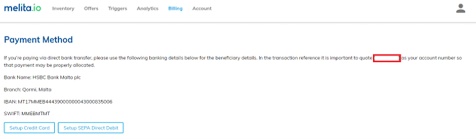 Melita.io offers three payment options;