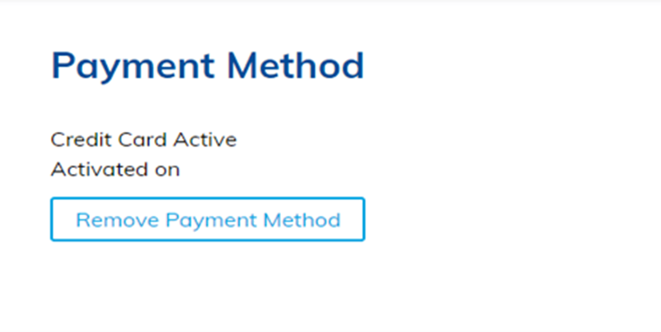 When you click on “Setup Credit Card,” you will be redirected to enter the card details. Please note that a payment of €0.10 will be processed to verify the credit card. Once the payment is processed, you will receive a confirmation message indicating the credit card payment method is active along with the set up date.
