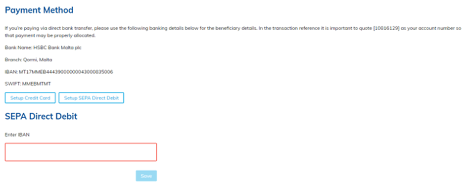 Simply enter the IBAN number of the account from which you want payments to be deducted.