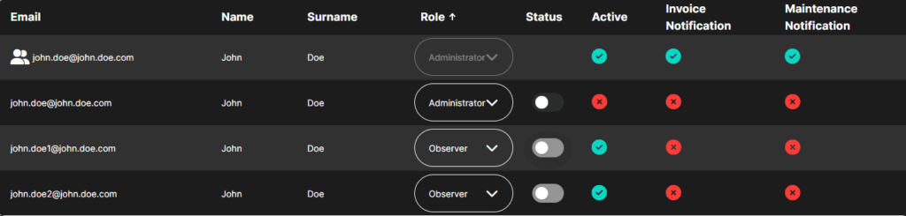 Only the parent administrator/administrator will be able to view the list of the users linked to the account. You can view the linked users by going to the Account tab. All users will be listed at the bottom of the page including their details and the user status. Only the administrators will be able to modify other users’ details.