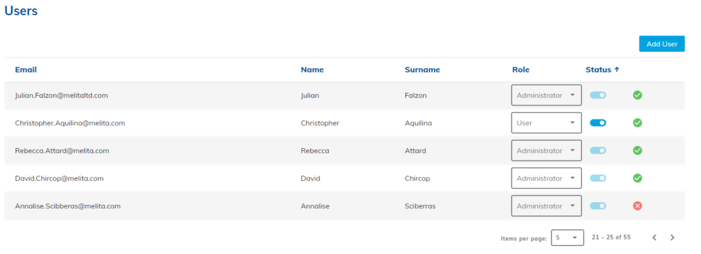 Only the parent administrator/administrator will be able to view the list of the users linked to the account. You can view the linked users by going to the Account tab. All users will be listed at the bottom of the page including their details and the user status. Only the administrators will be able to modify other users’ details.
