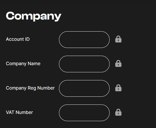 The company information is listed on the left. Those values will be set by melita.io during the account set up of your company account.