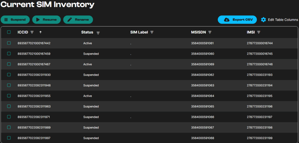 If you’re running multiple projects for which you are responsible you can put all SIM cards in one shared data package to increase efficiency. Should you opt to put all projects in one package it is important to note that all SIM cards will be provisioned with same configuration of connectivity options. In the melita.io portal you may then label each SIM card according to the project and device it is relevant to. This is a free form field so you may choose the naming approach you prefer.