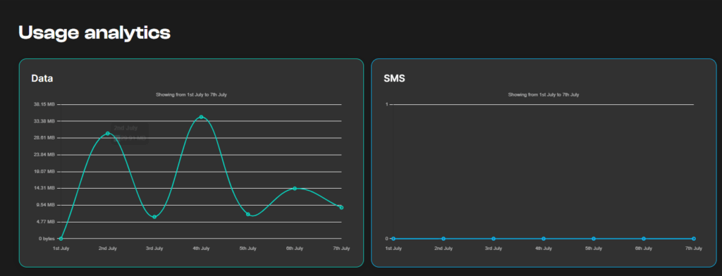 - Analytics – here you can understand the performance of your SIMs over time and their aggregate usage over time.