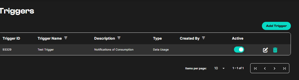 Triggers may be edited from the Triggers page by clicking the edit icon. If you want to delete a trigger forever, you can do so by clicking the delete icon from the same page.