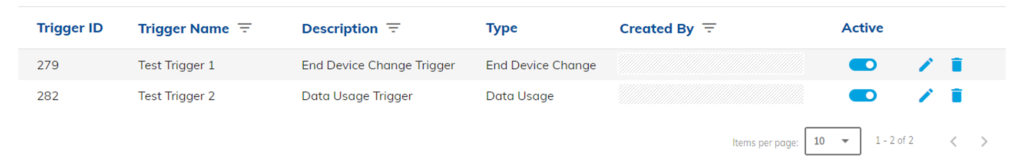 Triggers may be edited from the Triggers page by clicking the edit icon. If you want to delete a trigger forever, you can do so by clicking the delete icon from the same page.